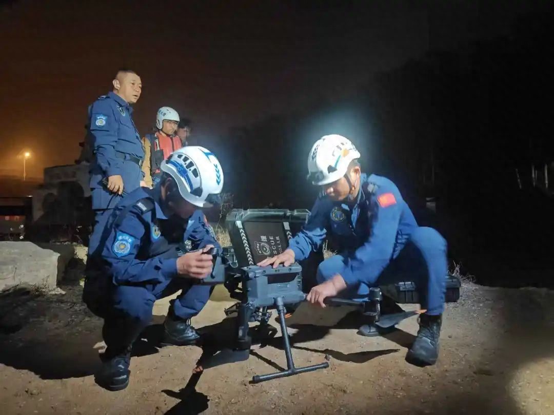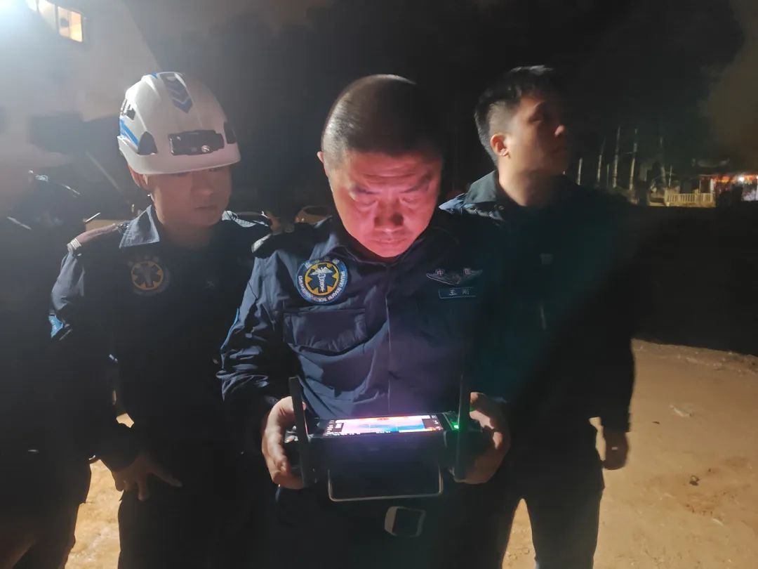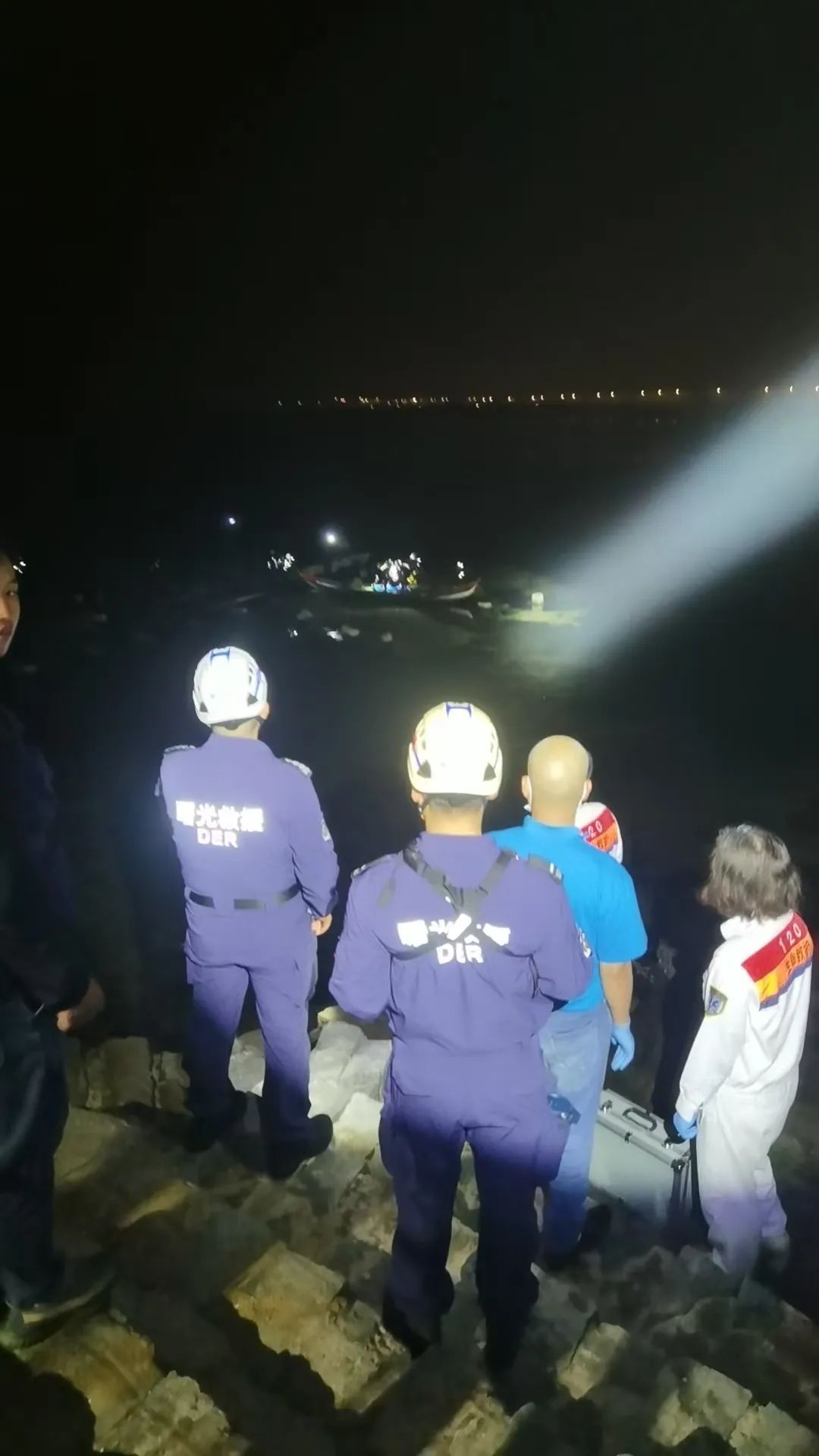 经现场研判曙光救援队起飞热成像无人机空中搜索配合海面舟艇搜寻同时派出巡岸小组搜救